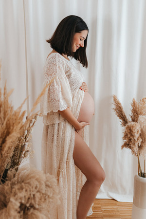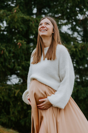 creme, gut dehnbar, abgedeckte Größen: S-L, auch für kleineren Babybauch geeignet